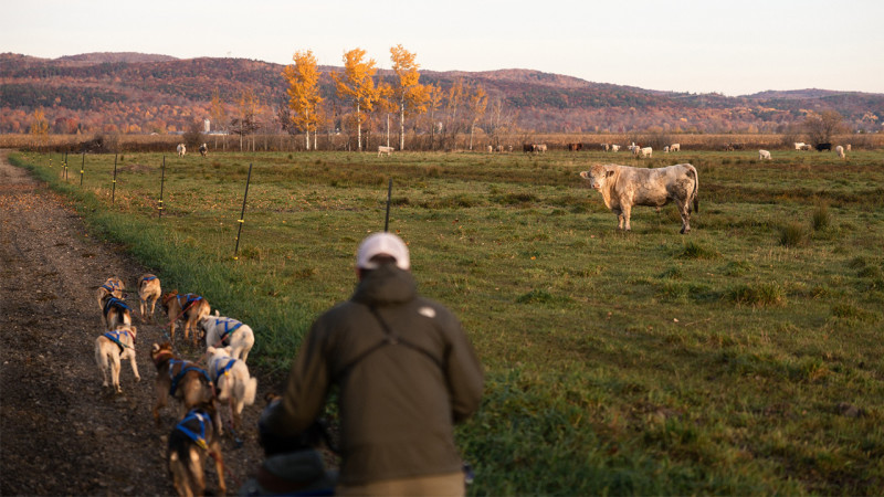 Du traineau à chiens sans neige, mais en automne dans Lanaudière