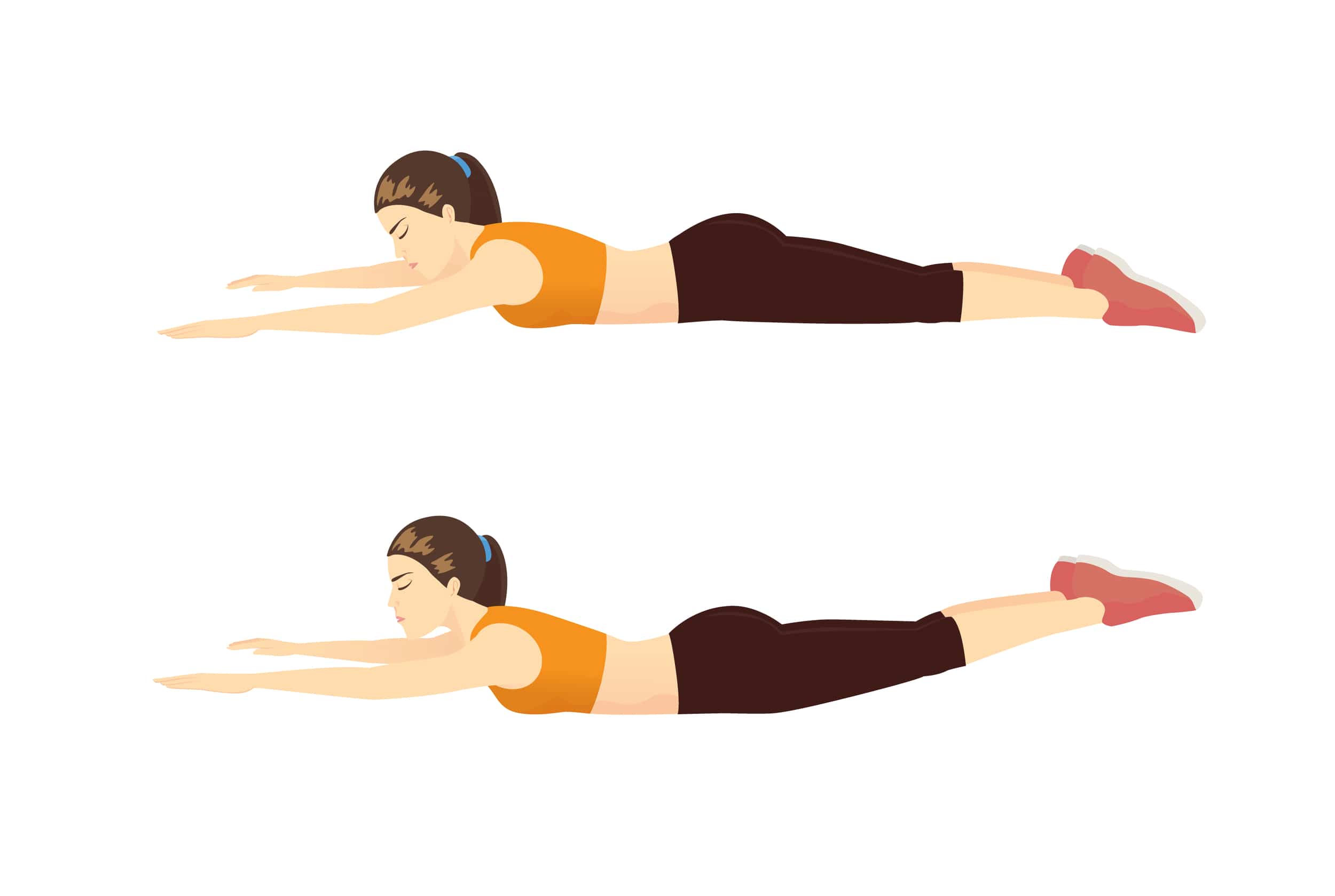 L'exercice superman consiste à se coucher sur le ventre et à soulever doucement les bras et les jambes simultanément. Cet exercice est très efficace pour renforcir les muscles du bas et du milieu du dos. Vous pourriez aussi ressentir une contraction du fessier.