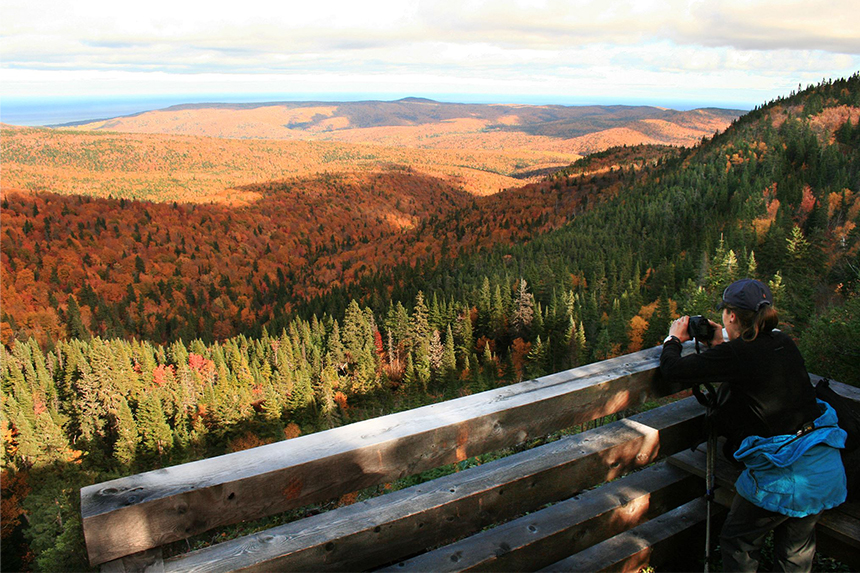 Bien connu pour ses « fantômes de neige »hivernaux, le parc national des Monts-Valin a aussi tout ce qu’il faut pour séduire les marcheurs à l’automne avec plusieurs randonnées sillonnant rivières et montagnes, le tout dans un cadre coloré enchanteur.