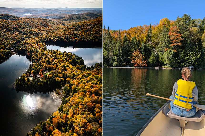 Autre moment chouchou : la balade en canot sur le petit lac Bonnet. Cette dernière nous a permis de jeter un coup d'œil aux sites de canot-camping de l'endroit. Ces emplacements intimes proposent des tentes de prêt-à-camper avec chacune leur petit quai. On les rejoint en quelques minutes de canotage (ou à pied au besoin), en profitant bien des couleurs automnales.