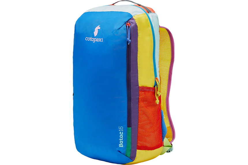 Compact et coloré, ce sac se distingue par un poids minimal (environ 0,6 kg) et une silhouette citadine qui s’adapte aux petites journées. Il offre un panneau avant en filet extensible, une poche simple mais pratique, le tout conçu dans des matériaux recyclés. Une option légère (et un brin excentrique) pour les randonnées courtes ou le quotidien.