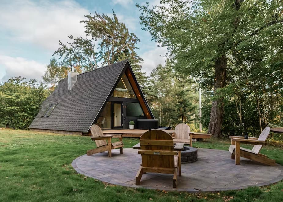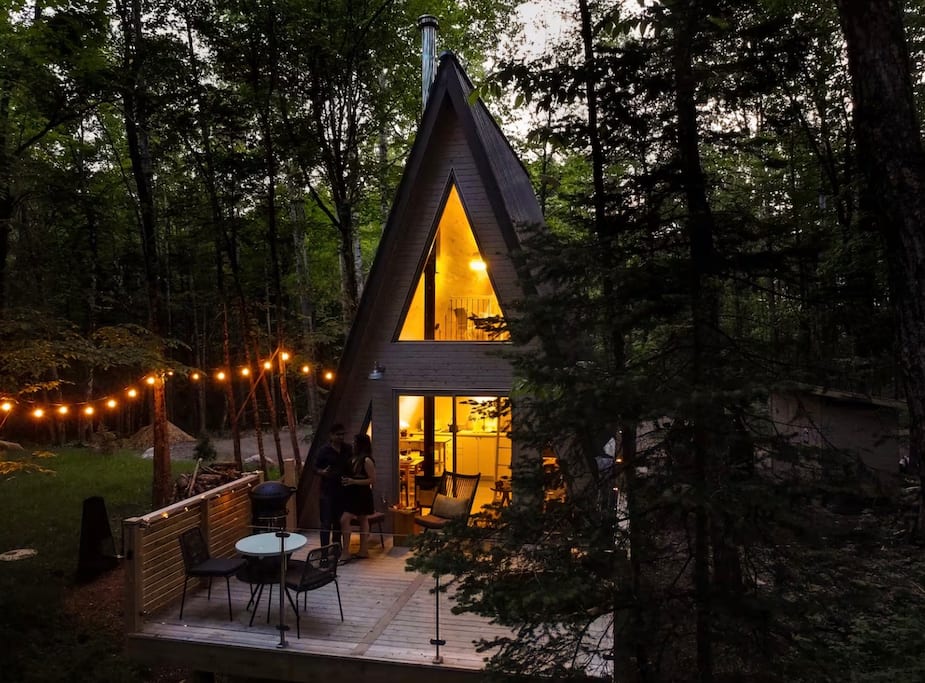 « Ce chalet en A est situé à un peu plus d'une heure d'Ottawa, nichée dans 75 acres de forêt avec accès au lac (partagé avec 3 autres chalets) et parfait pour les couples cherchant une escapade romantique. Équipé de toutes les commodités, y compris un jacuzzi privé en cèdre, un poêle à bois, et un chauffage au sol radiant, le rendant le refuge idéal pour un séjour cosy et intime. Détendez-vous dans cet espace calme et élégant! »