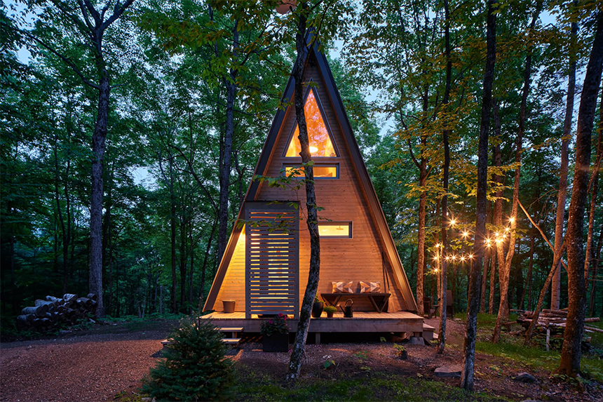 Chalets Prunella, c’est un petit site d’hébergement qui a ouvert ses portes en pleine nature fin 2021 à, à 1h15 de Gatineau. On y trouve 7 mini-maisons en A largement vitrées et entièrement équipées. Douillettes, elles ont chacune leur spa privé à l’extérieur de même qu’un petit foyer. Deux unités sont pour les couples; cinq autres pour les groupes ou famille de quatre.