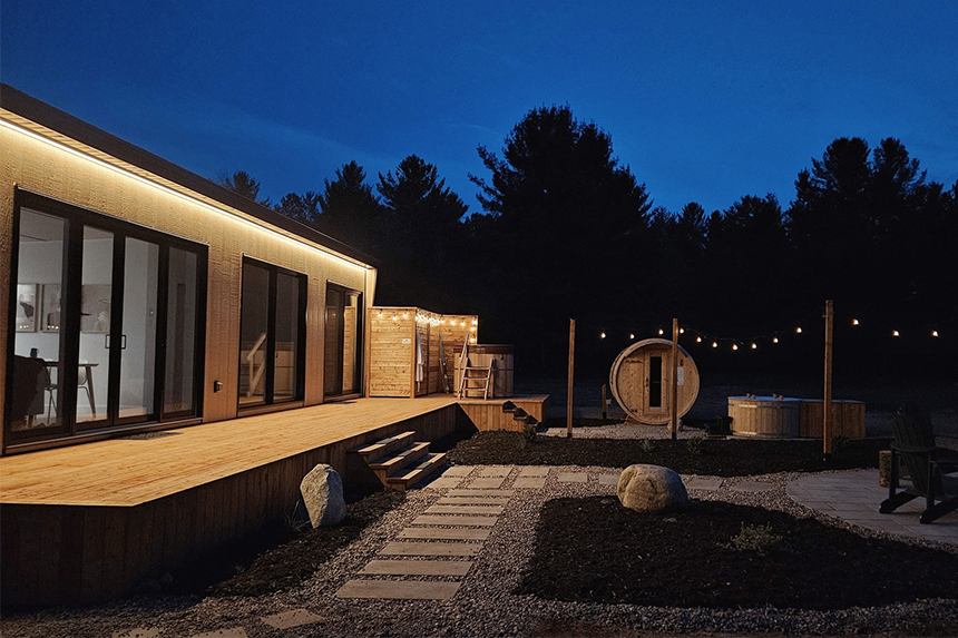 « À seulement une heure d'Ottawa , Kaza Chalets & Spa est un havre de paix au bord du lac où le confort moderne se mêle parfaitement à la tranquillité de la nature. Niché sur 25 acres privés, notre confortable mini chalet offre un cycle thermique complet conçu pour régénérer votre corps et votre âme, et une multitude d'activités extérieures et intérieures pour une escapade parfaite ».