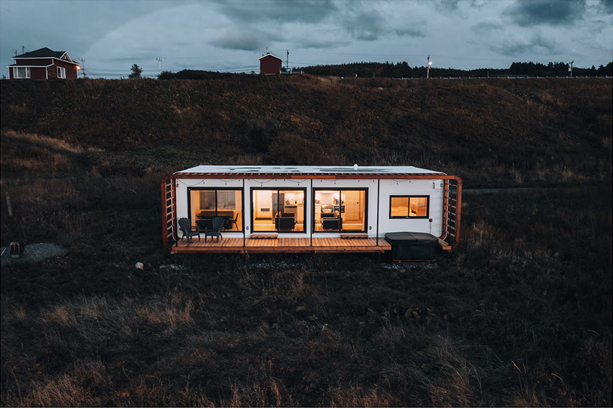 Les « loges fluviales » du site d’hébergement Panora, qui a ouvert ses portes en juillet 2022, sont installées à environ 10 mètres du fleuve, en contrebas de la route 132. Sept des petits chalets sont conçus pour accueillir quatre personnes, que ce soit deux couples ou une famille, alors que trois autres sont pensés pour les duos. Les deux modèles offrent une petite terrasse avec un « spa » privé et des vues magiques sur le fleuve.